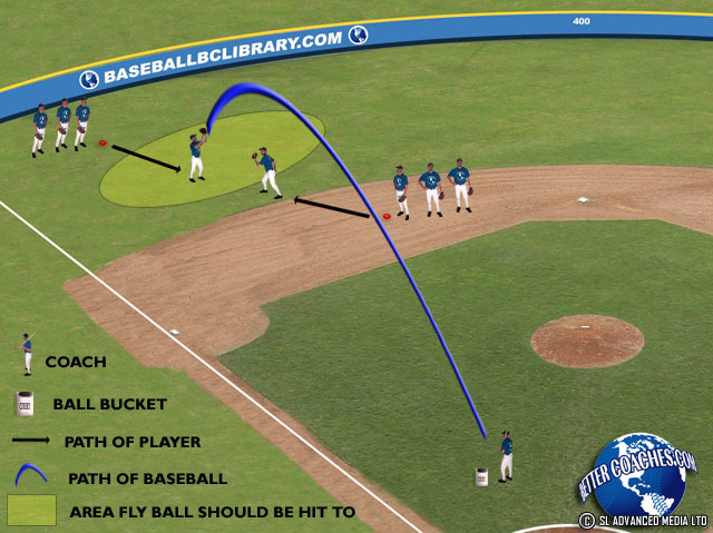 • Divide players into two lines (one line standing in left field, the other at shortstop) and hit fly balls between them. Their job is to decide who is going to make the catch and who is going to cover.