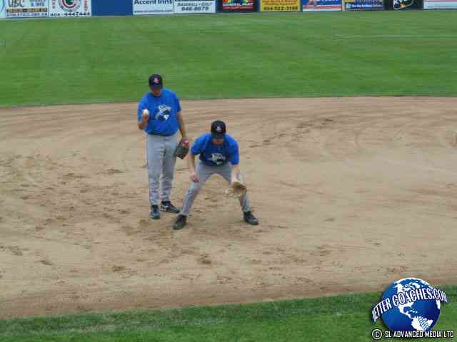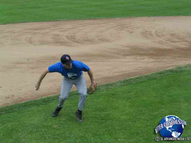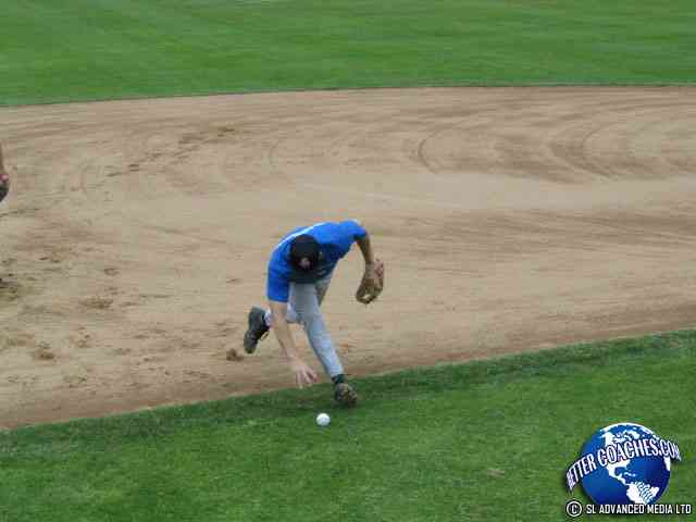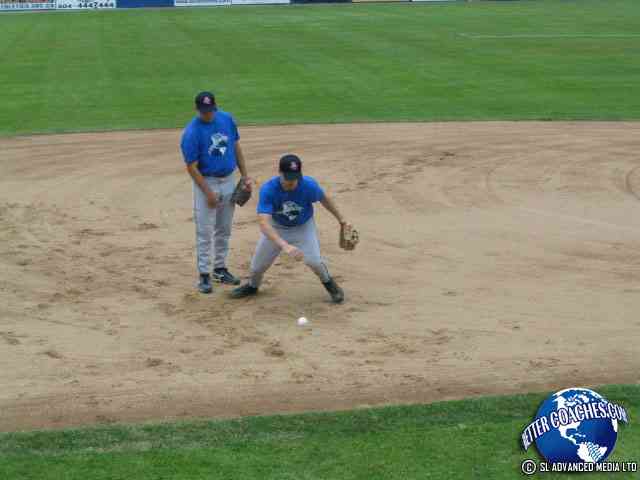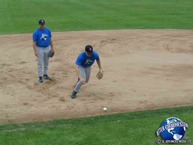 The infielder must pick the ball up with their throwing hand. Have the infielders in the ready position.