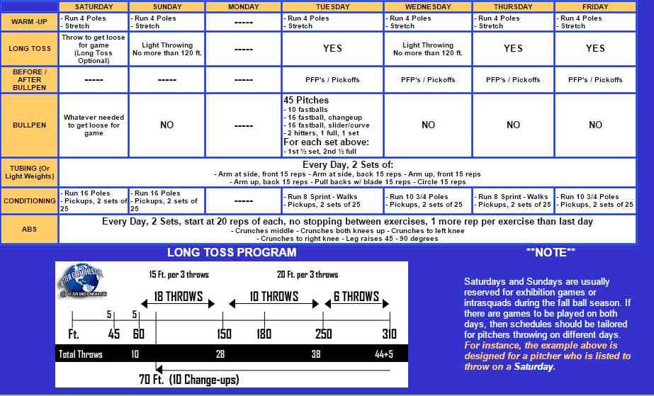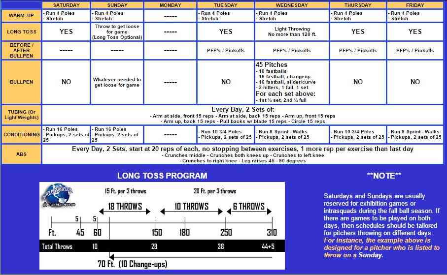 Also check out examples of Daily Fall Programs for collegiate-level pitchers: