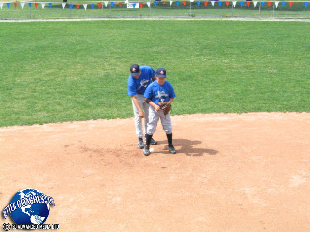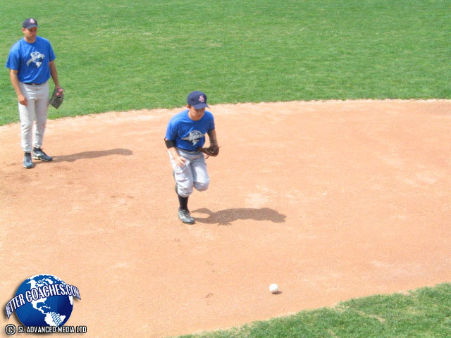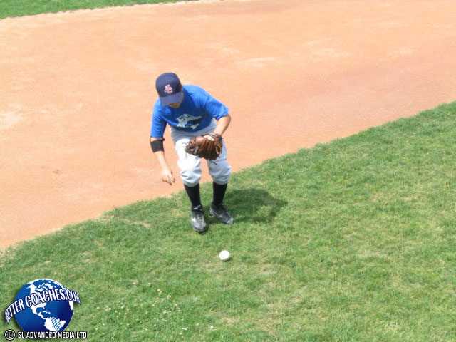 The infielder must pick the ball up with their throwing hand. Have the infielders in the ready position.