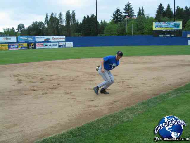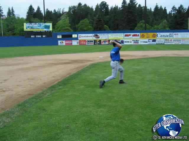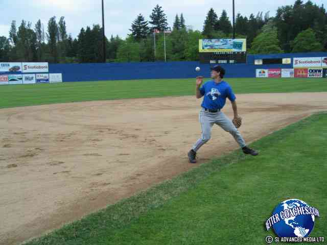 Once the player recovers the baseball continue on to make the throw to the first baseman.