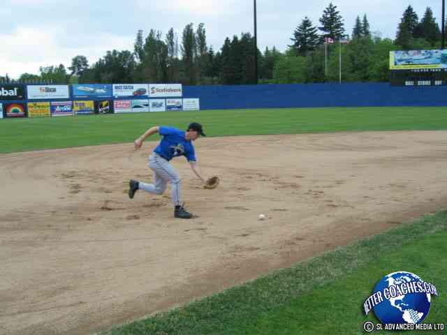 The players should start with a glove on, once comfortable with that then the glove can be taken off just using the bare hand pick-up.