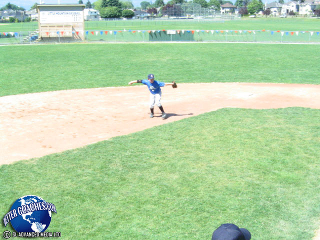 Teach players to keep their body moving toward the intended target during the recovery of a bobbled baseball.