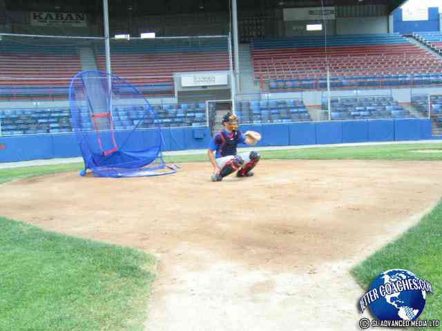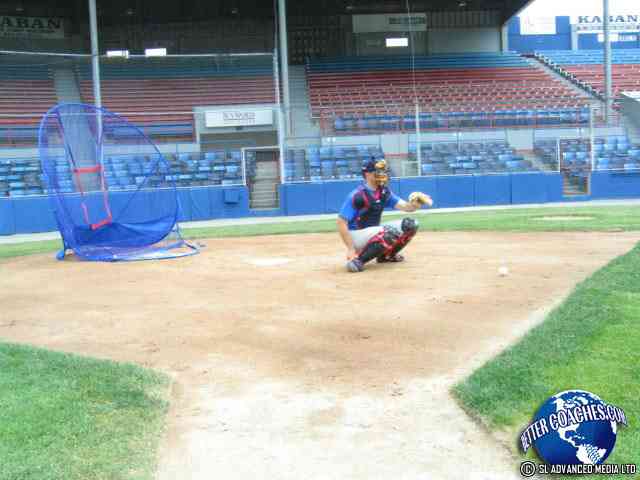 Phase 2: The catcher sets up on the plate for six to eight baseballs.