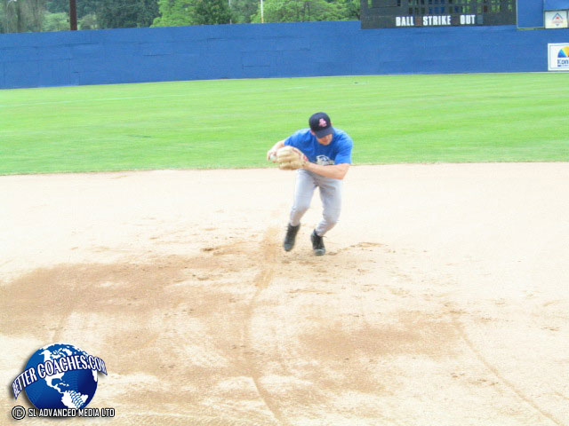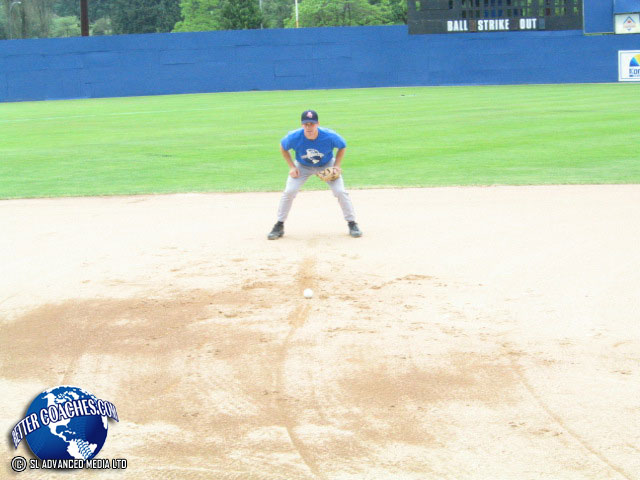 Produce the proper angle for an infielder when fielding a baseball that is hit directly at them.