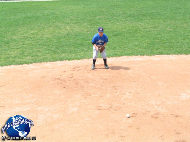 • Produce the proper angle for an infielder when fielding a baseball that is hit directly at them.