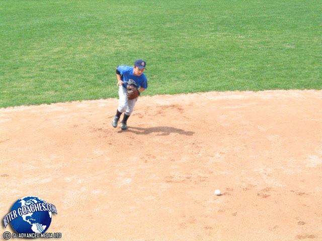 • The infielder moves towards the baseball from an angle, not directly at the ball.