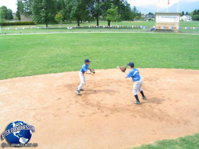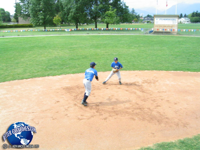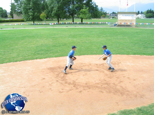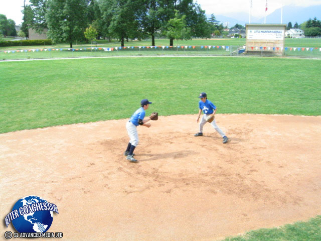 Toss the baseball just in front of the target in the direction that the players are moving.