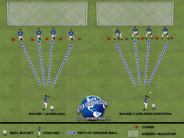 • Progress from kneeling to fielding position (see diagram)