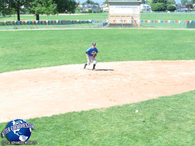 Once the player recovers the baseball continue on to make the throw to the first baseman.