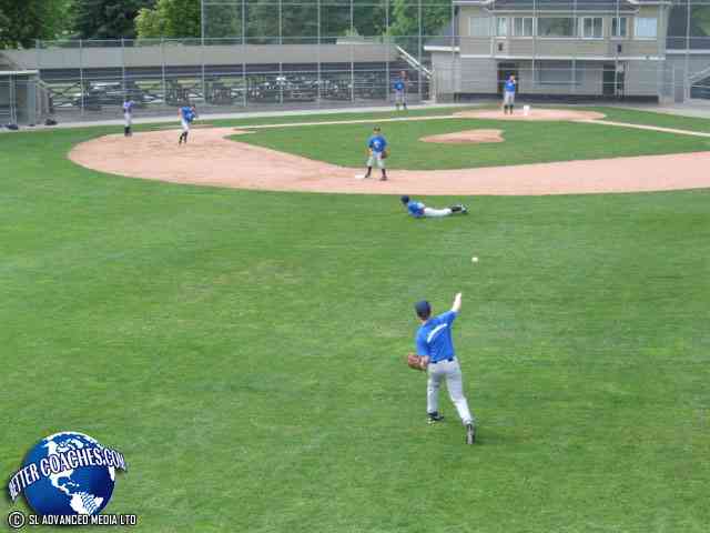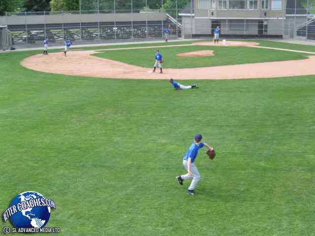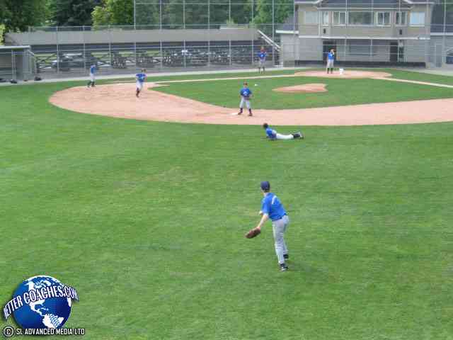 The outfielders make the play to second base.